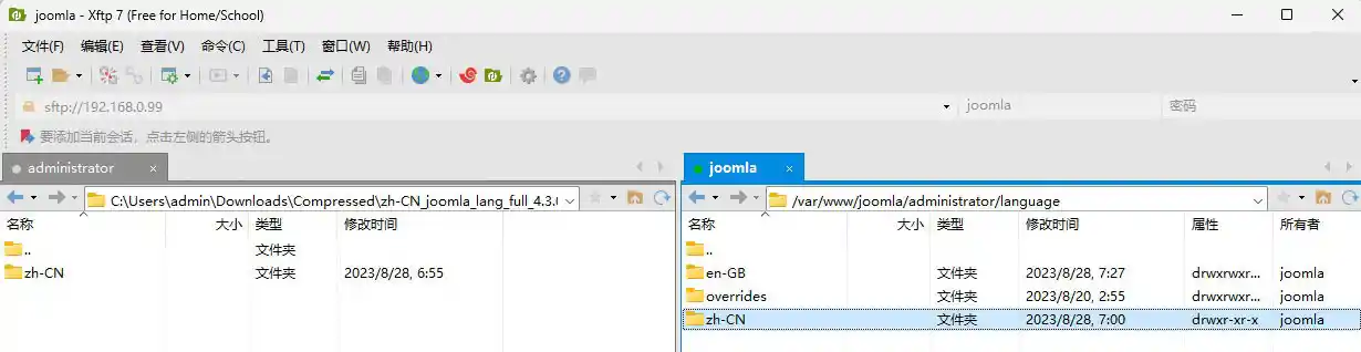 将administrator文件夹下的zh-cn文件夹上传到网站根目录administrator/language目录下