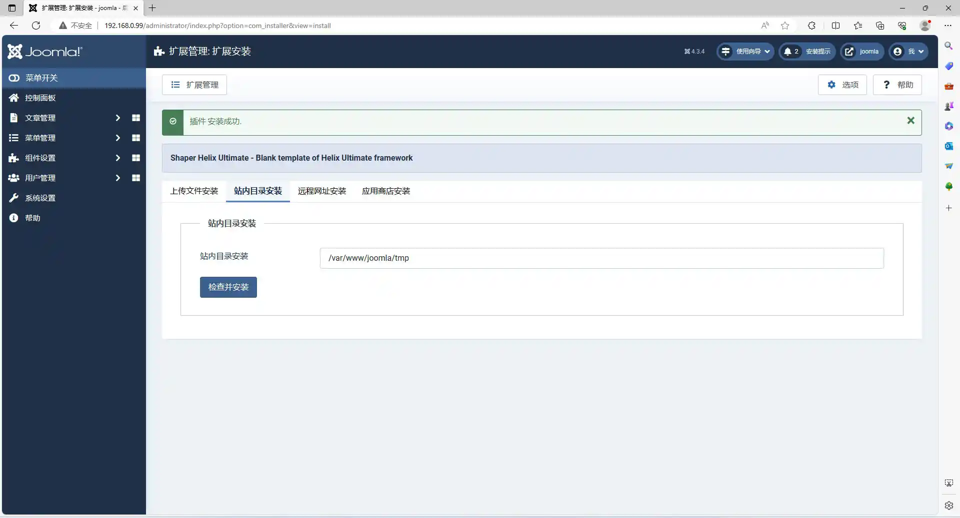 下载Helix Ultimate免费模板,上传到网站tmp目录下,点击系统设置-扩展安装-站内目录安装